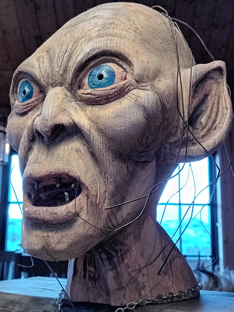 Lekenhet og tålmodighet var viktige ingredienser da Gollum etter hvert ble hentet fram med hele sin komplekse personlighet i denne håndskårede treskulpturen.